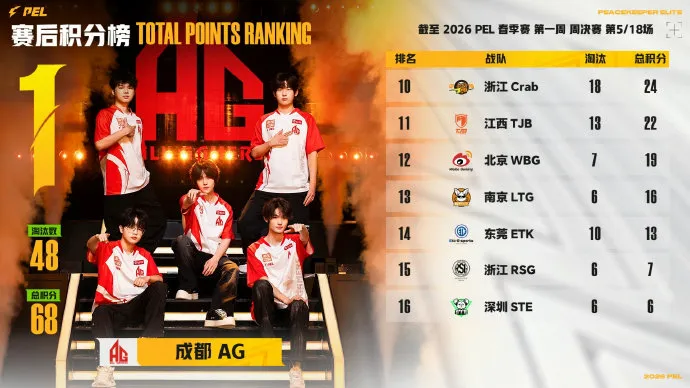 决胜时刻,信号圈缩在材料厂附近,圈内剩余成都AG战队、苏州KSG战队和深圳4AM战队,此时场上4v4v4。三队发生混战,一波人员互换后,AG战队先被淘汰出局,随后剩余两队展开对战,最终4AM战队凭借默契配合将KSG战队逐个击破拿下比赛,恭喜深圳4AM战队获得本场比赛胜利。